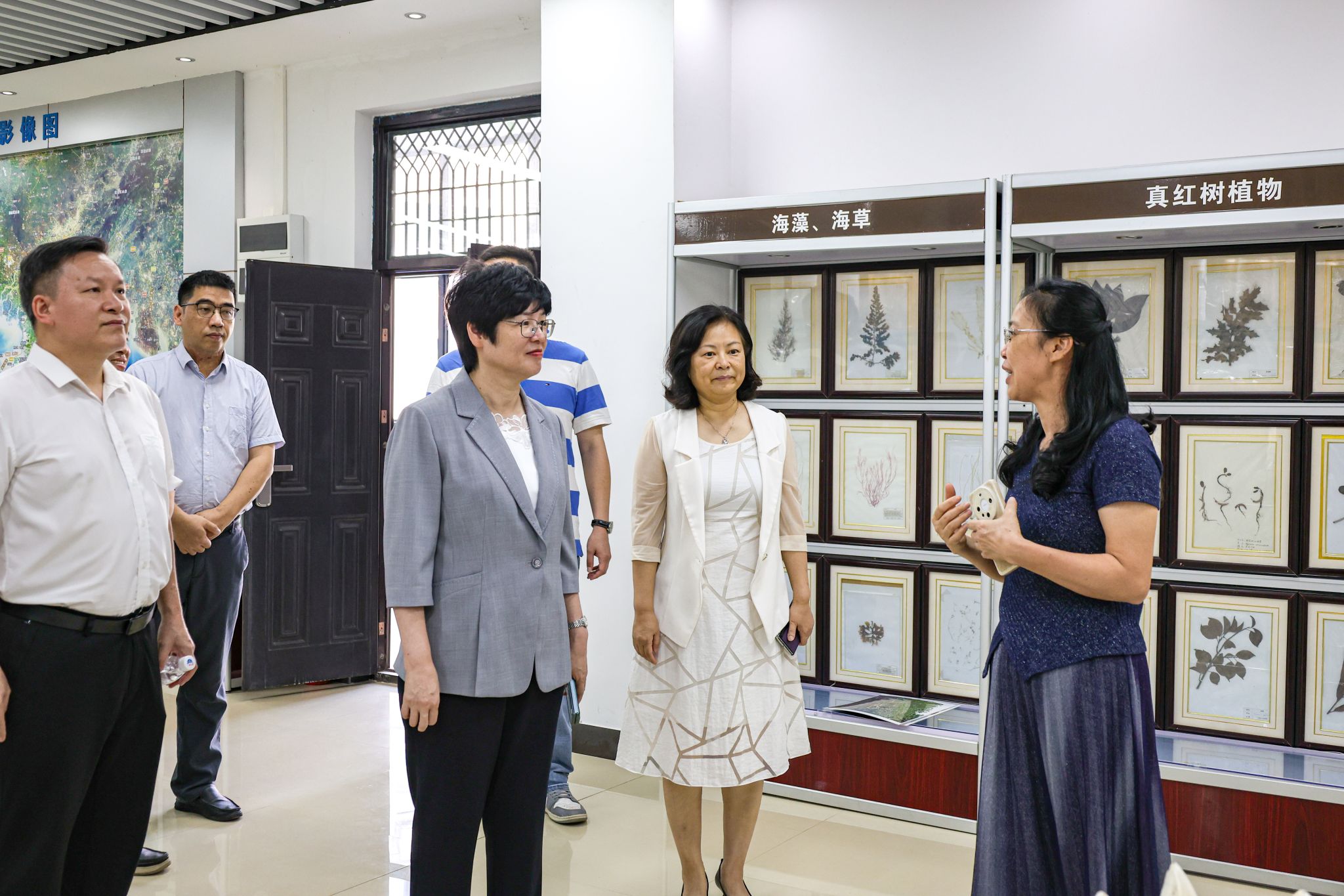 梁春花副主席(左二)在陈丹副校长(左三)的陪同下到生物标本馆听取相关科研成果介绍