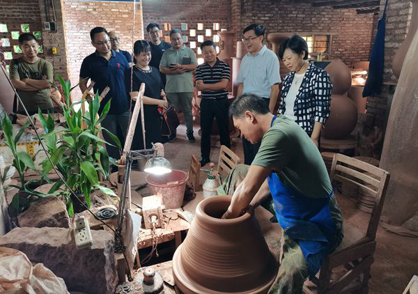 陈丹副校长(右二)在广西钦州千秋陶业有限公司调研坭兴陶生产工艺