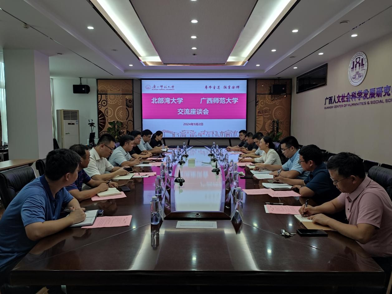 参观结束后,广西师范大学科学技术处处长沈星灿、相关学院领导及科技处相关科室工作人员与我校就国家自然科学基金项目申报、校企合作及成果转化等内容进行了交流,并就两校科技工作共同面临的困难和下一步发展思路进行了深入探讨。