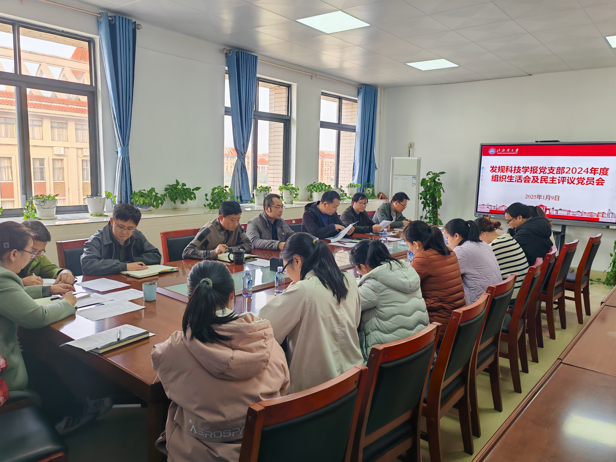 1月9日下午,发规科技学报党支部在办公楼463会议室召开2024年度组织生活会及民主评议党员会,机关党委委员、统战部副部长黄玮到会指导。支部副书记郭哲主持会议,支部全体党员参加了会议。