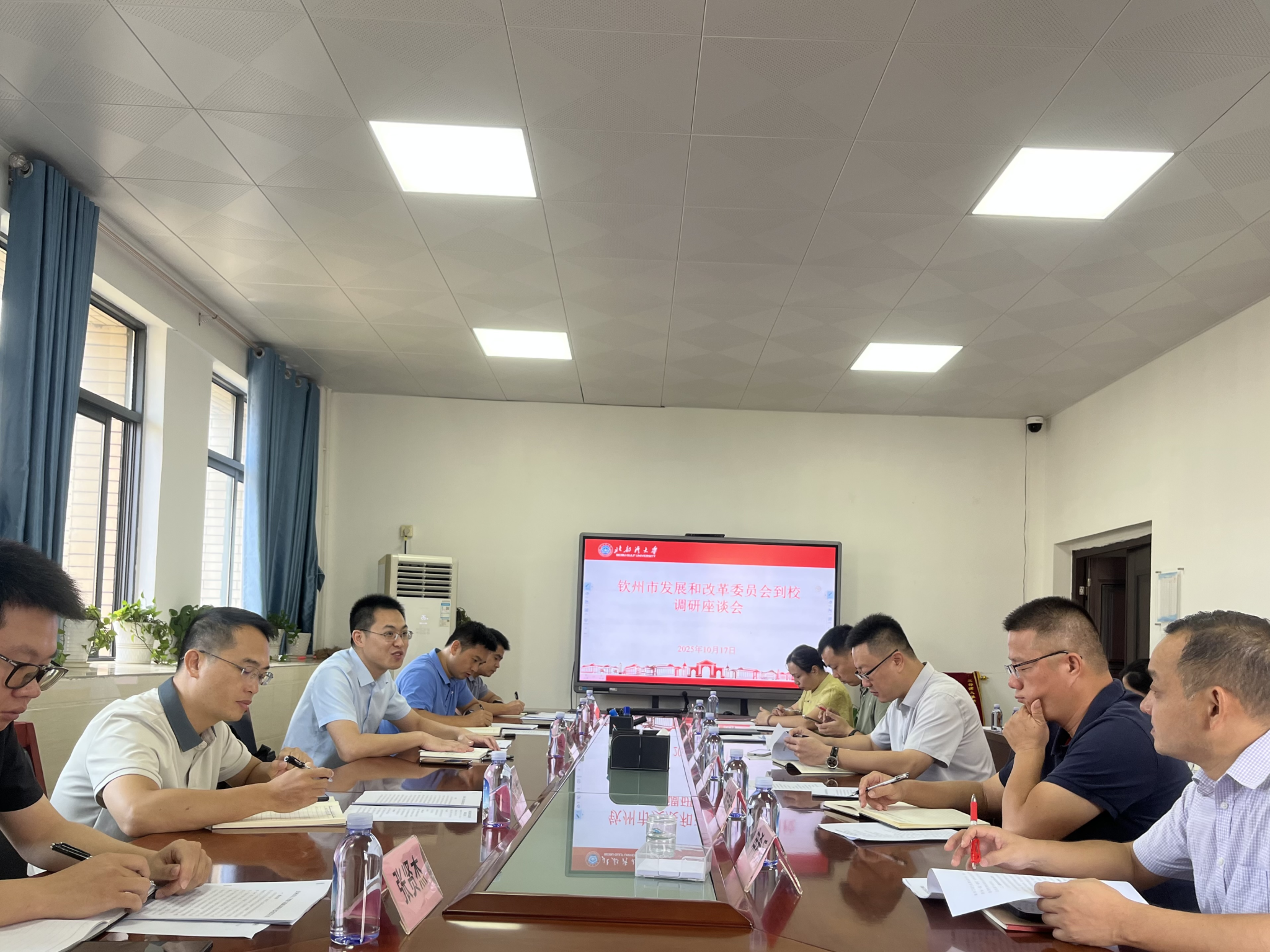 10月17日,钦州市发展和改革委员会副主任、能源局局长颜管经率队来校调研交流。学校科技处处长潘宇晨主持会议。