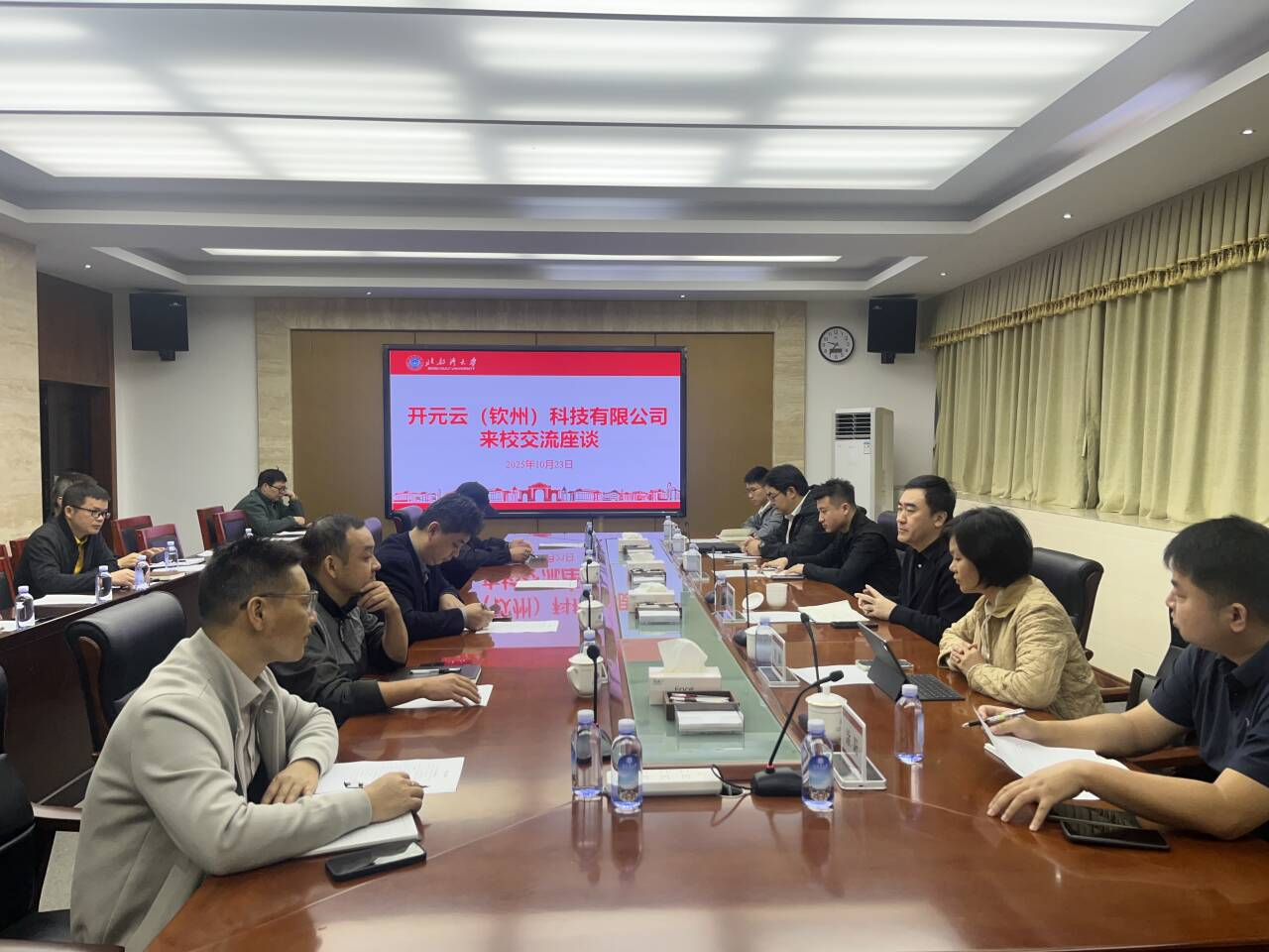 钦州市开投产业投资有限公司、钦州市信息中心,学校科技处及理工科学院相关负责人及骨干教师代表参加座谈。