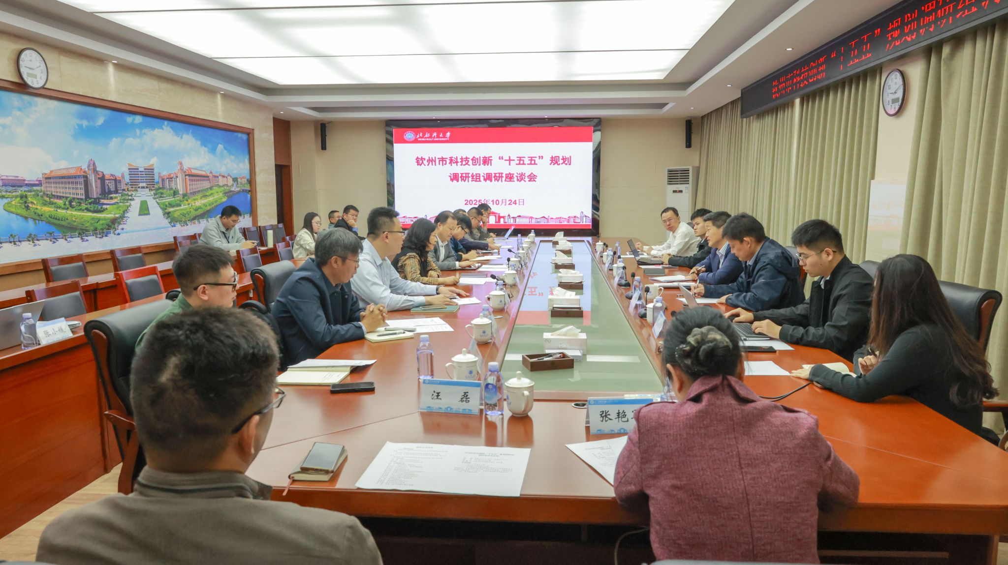 10月24日,中国科学院大学公共政策与管理学院长聘特聘教授陈凯华率钦州市科技创新“十五五”规划调研组来校开展调研座谈,并听取学校对规划初稿的意见建议。校党委常委、副校长陈丹出席座谈会。