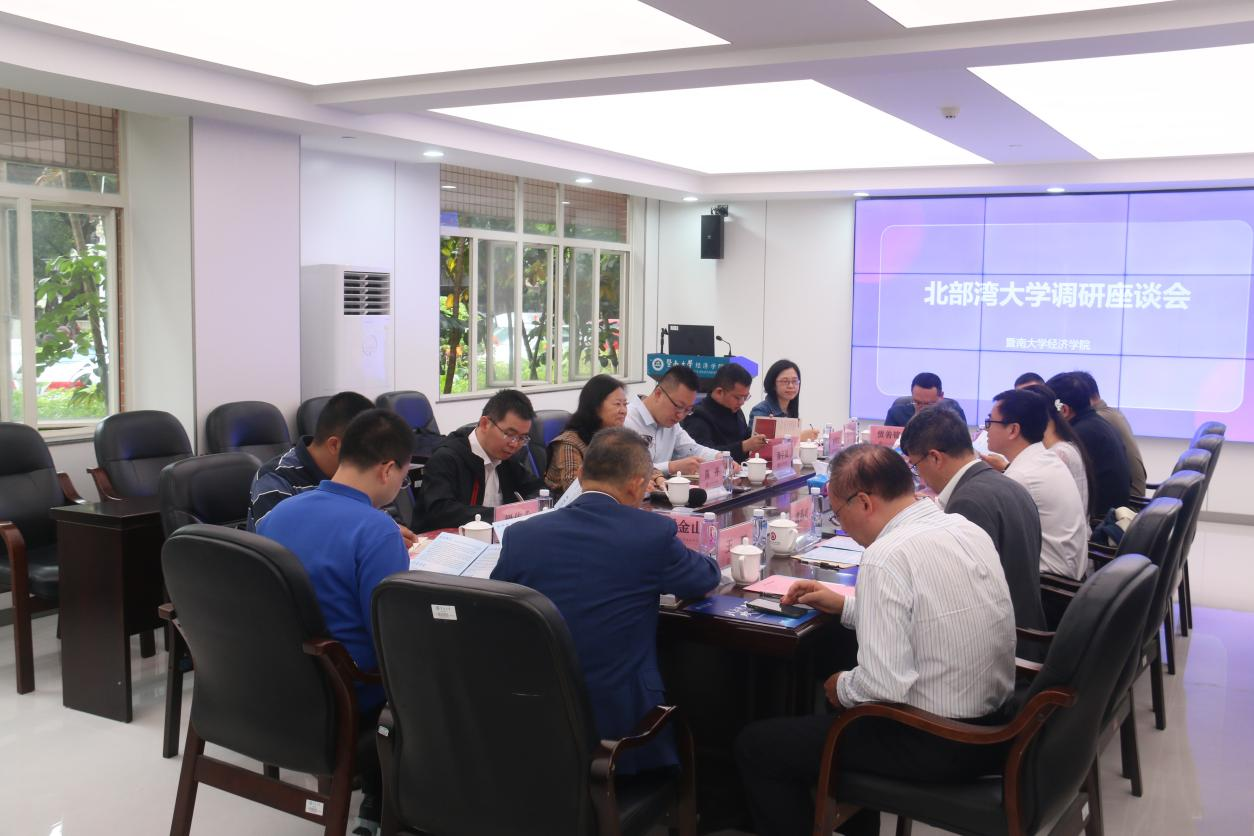 在暨南大学,校党委常委、副校长顾乃华热情接待陈丹一行,介绍了该校在产学研合作、区域经济研究及服务地方经济发展等方面的特色经验。陈丹介绍了北部湾大学的海洋性办学特色,希望以“两湾”联动为契机,深化两校在跨区域协同创新、产学研合作及学术交流等方面的合作,共同助力国家海洋强国建设。