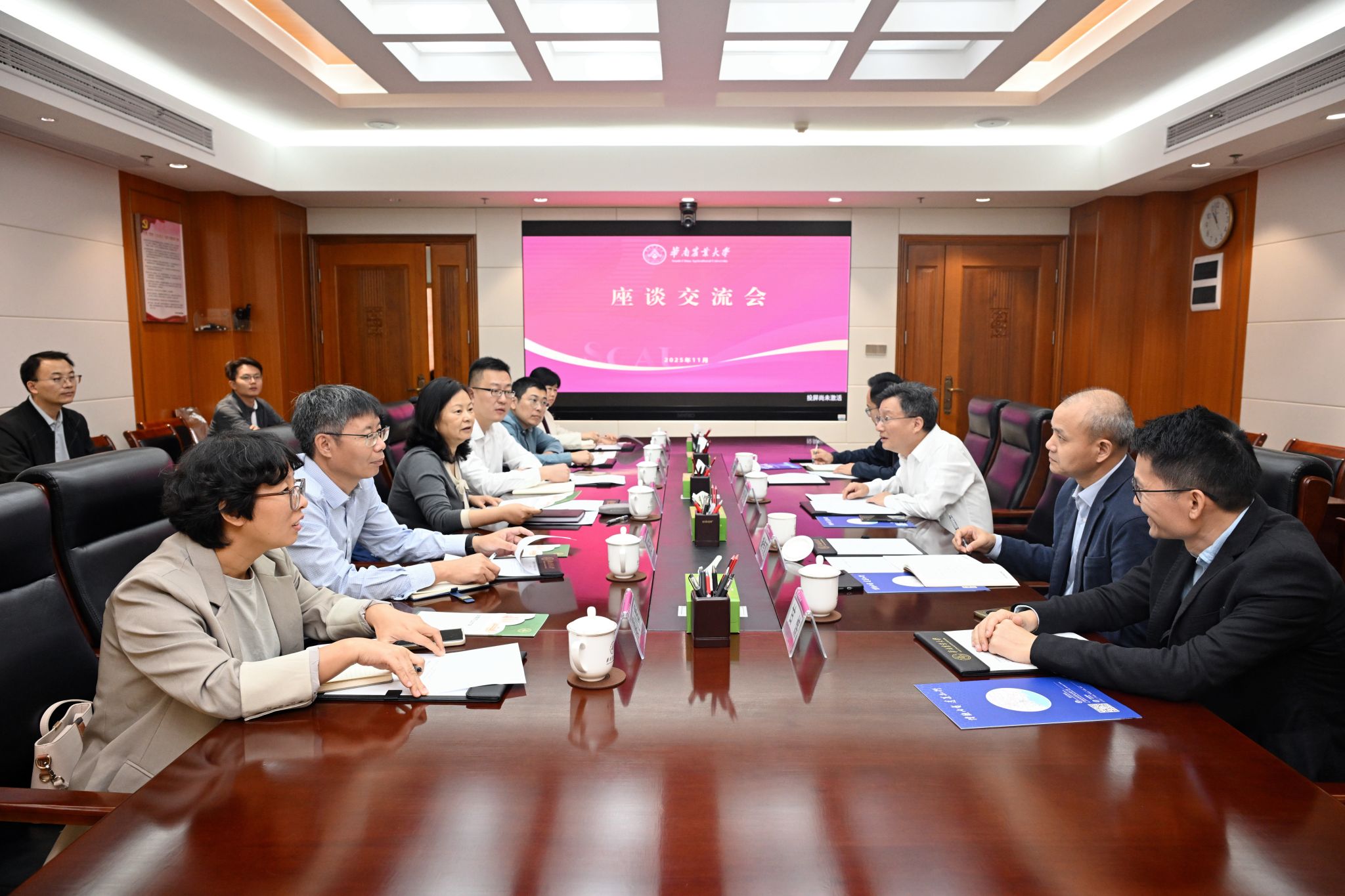 在华南农业大学,副校长温小波对陈丹一行表示欢迎。陈丹介绍了北部湾大学在水产养殖、海洋牧场装备与蓝色粮仓建设方面的实践探索。双方一致认为,在“两湾”联动战略引领下,两校在滨海农业、智能农机、现代海洋牧场装备、水产养殖技术等领域合作前景广阔,期待加强合作,携手服务区域经济社会发展。