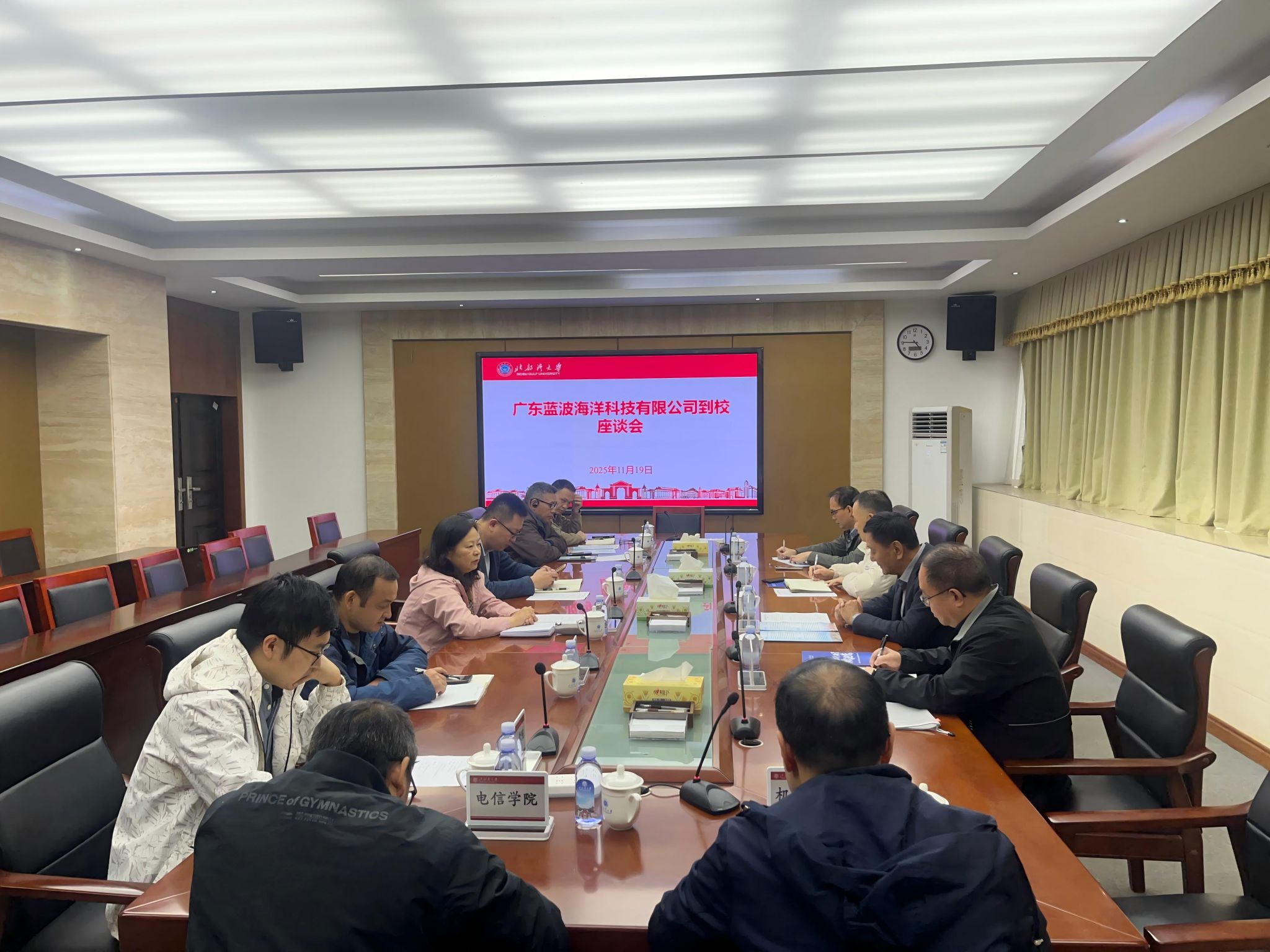 11月19日,广东蓝波海洋科技有限公司总经理张明富率队来校座谈交流。校党委常委、副校长陈丹出席座谈会,科技处处长潘宇晨主持会议。