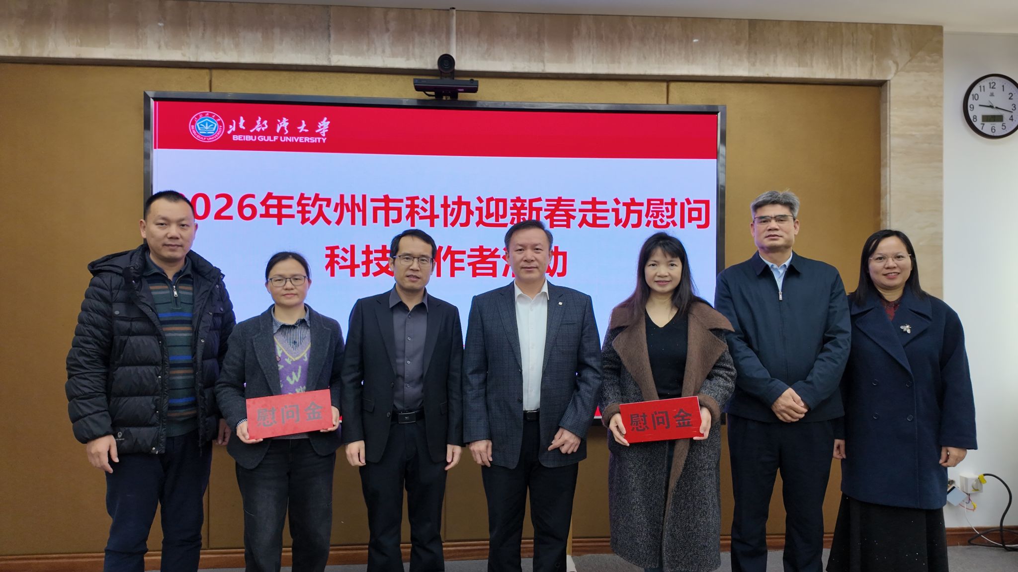 1月27日上午,钦州市科协党组书记、主席何立伟一行来校慰问音乐舞蹈学院院长曾美良教授、食品工程学院院长戴梓茹教授,为她们送上党和政府对科技工作者的关怀与温暖,并致以诚挚问候和新春祝福。我校副校长尹艳镇、钦州市科协副主席林青山参加慰问。