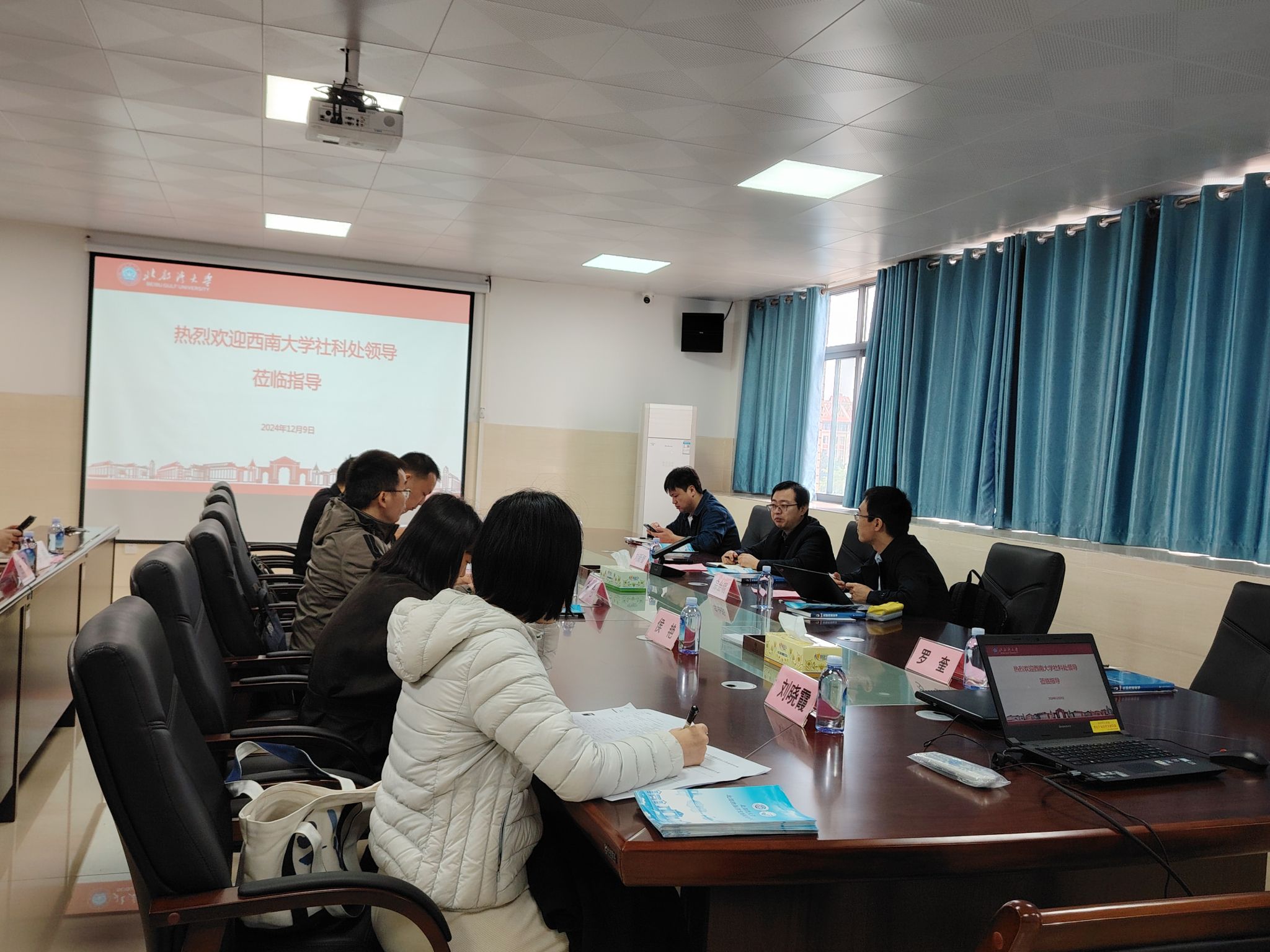 12月9日上午,西南大学社会科学处副处长刘新智、陆海新通道与区域研究中心主任宗会明一行来校调研交流。经济管理学院院长朱念、人文学院副院长侯艳、钦州发展研究院副院长黄孙庆参加调研。科技处副处长郭哲主持座谈会。