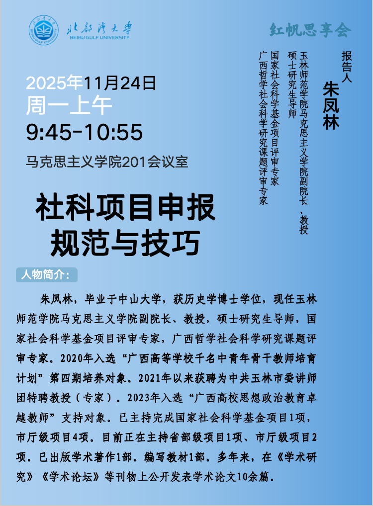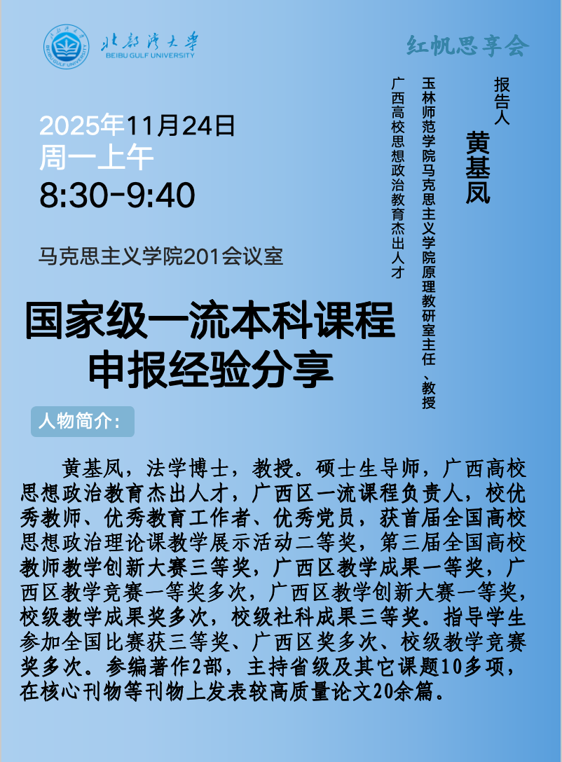 关于玉林师范学院黄基凤教授、朱凤林来校讲学的预告