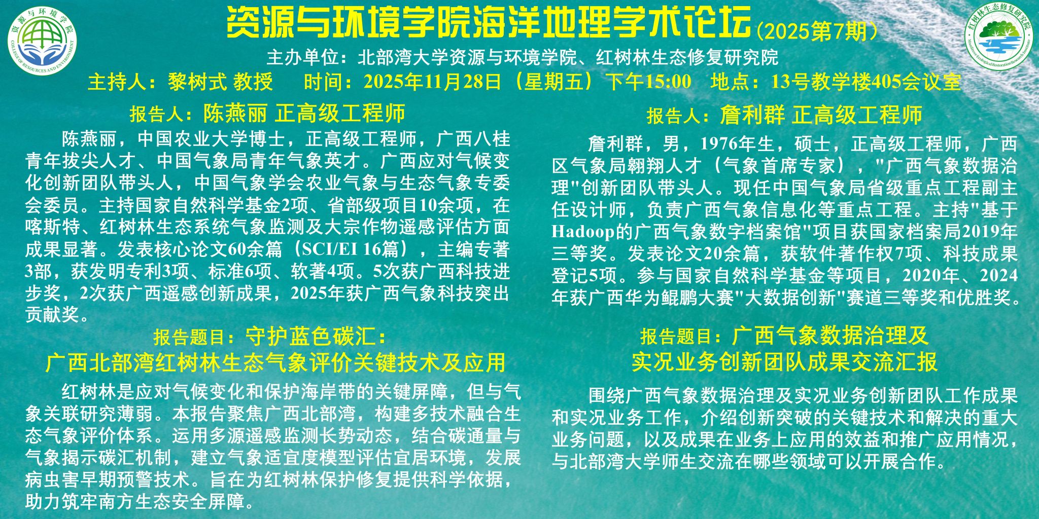 资源与环境学院海洋地理学术论坛 (2025第7期)