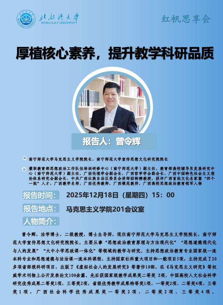 关于南宁师范大学曾令辉教授来校讲学的预告