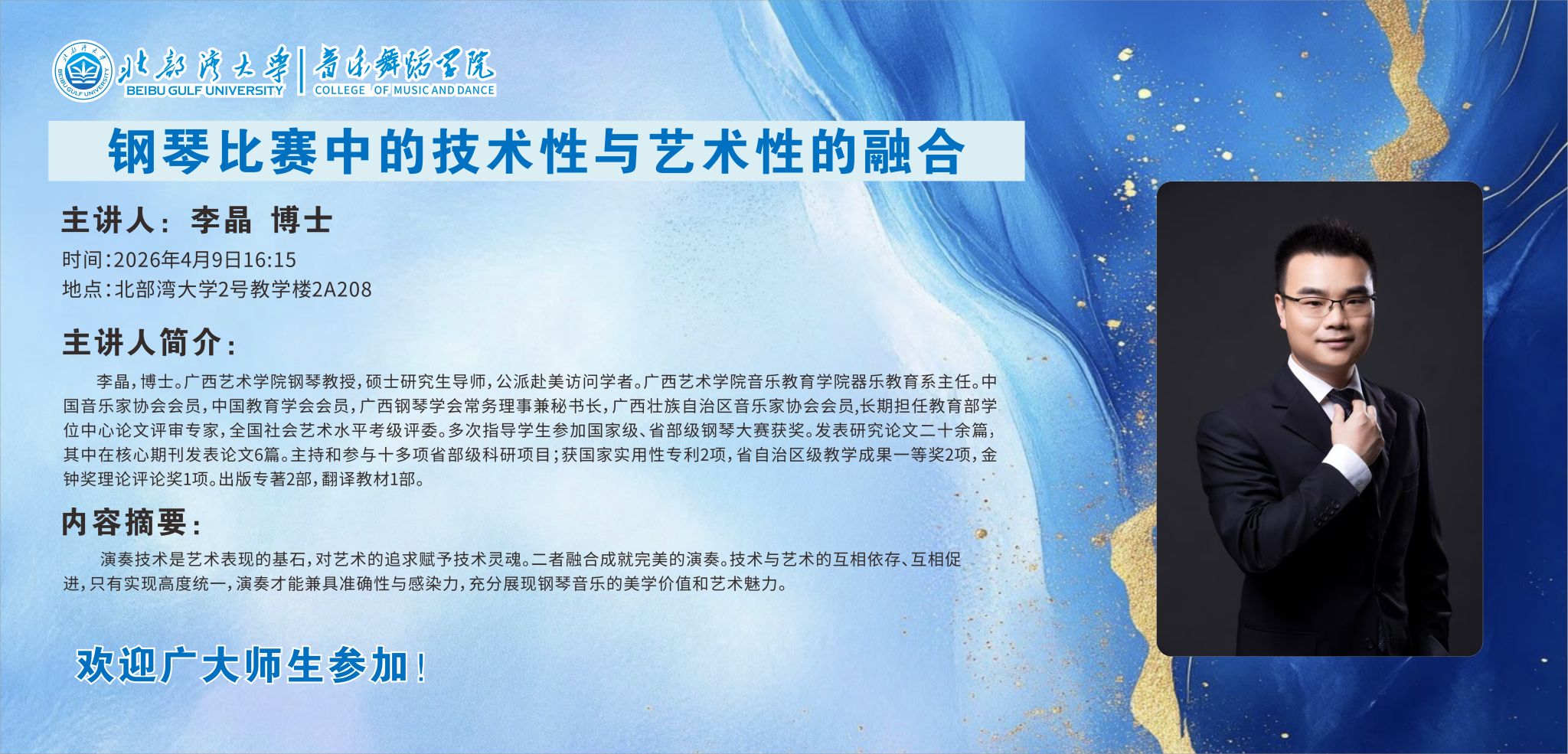 参加人员:音乐舞蹈学院师生、其他感兴趣的师生